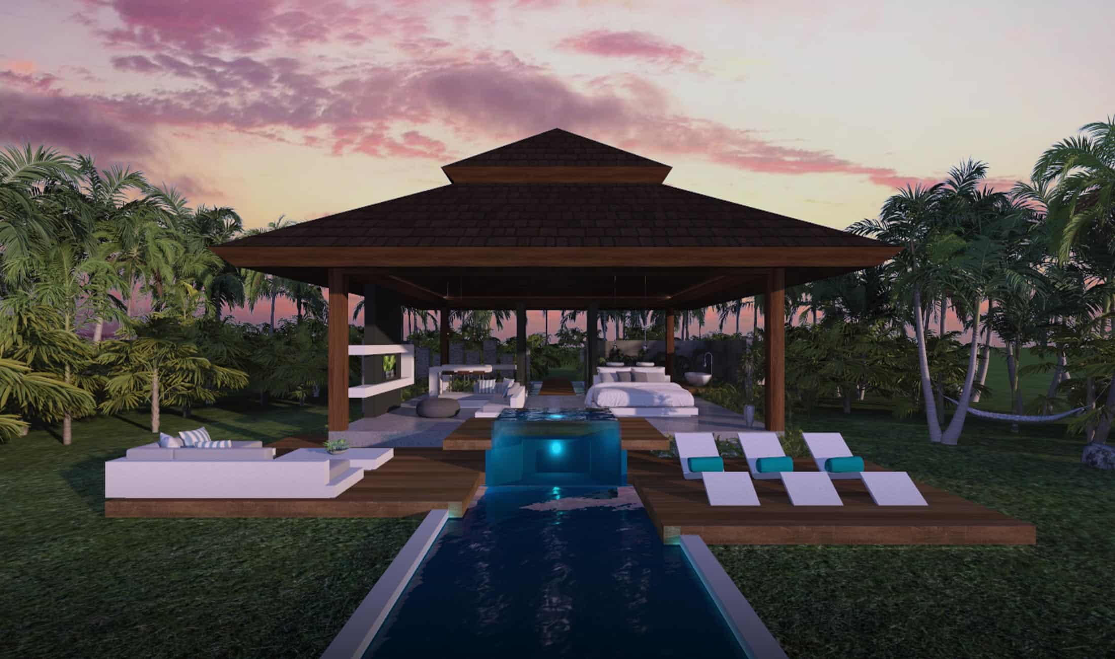 Emulating the beachside villas of Bali, Chris Clout Design has embarked on a concept that takes the ideal Balinese space and opens it up to take in its’ tropical surrounding with the use of a central living area beneath the embrace of a welcoming pagoda roofline.