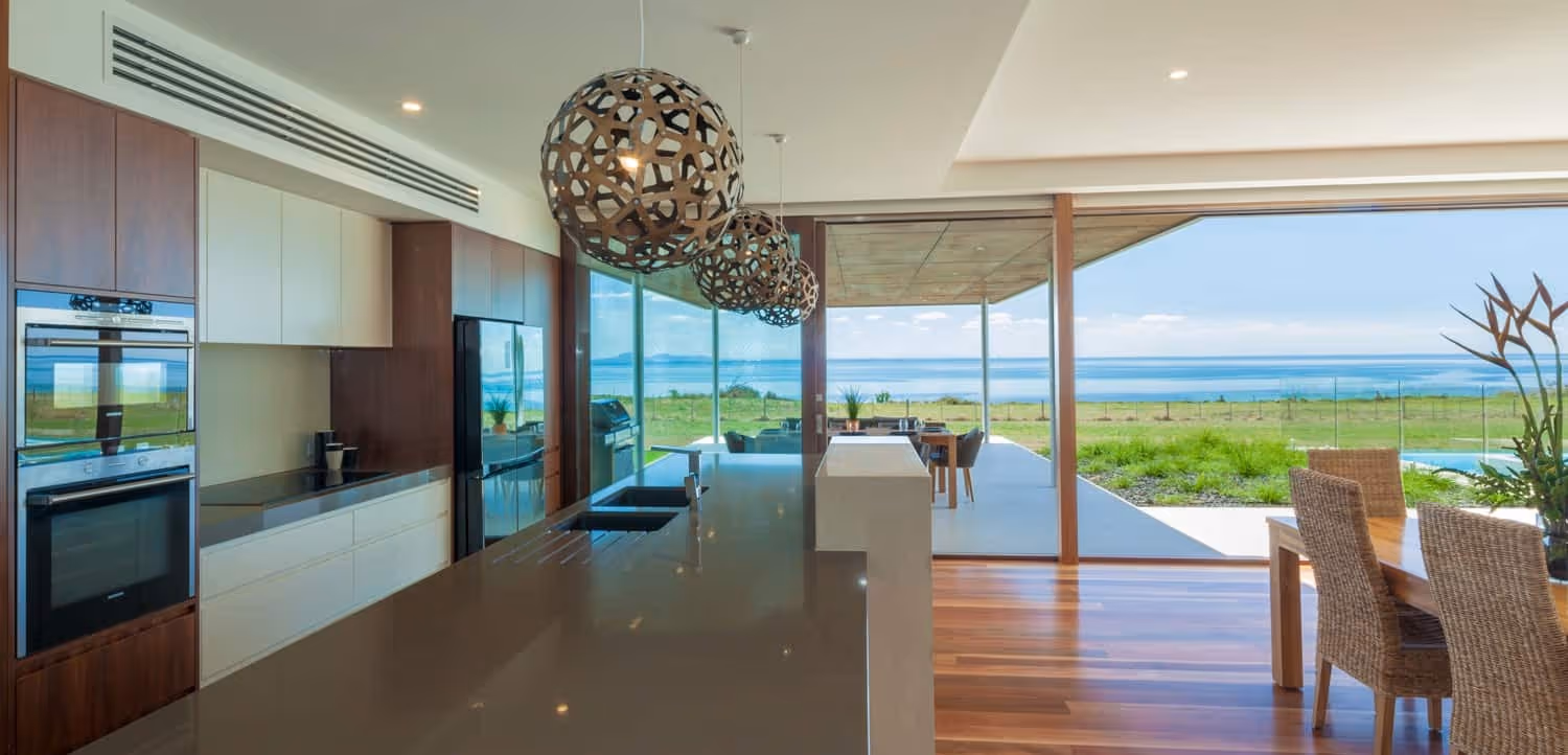 An impressive cliff side location in Curlewis, Victoria, needed an equally impressive statement design. The long layout of the house provides maximum access to the amazing views which are available along the entire ocean side via full height double glazed windows.