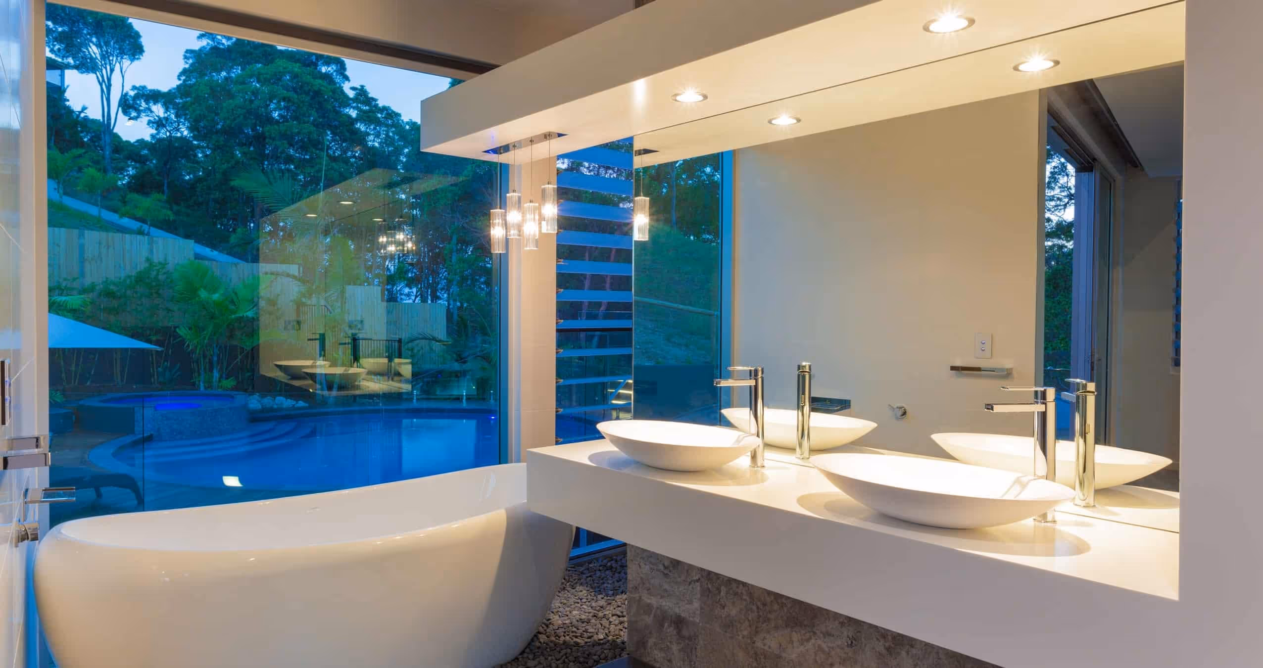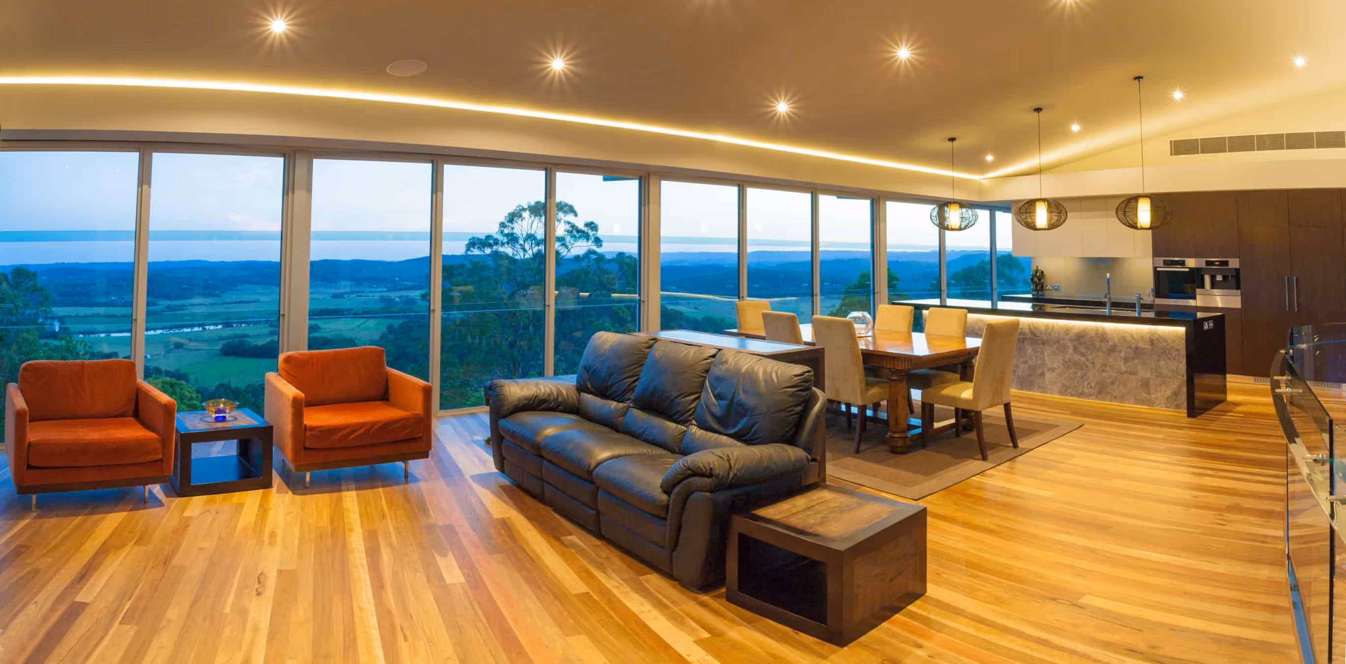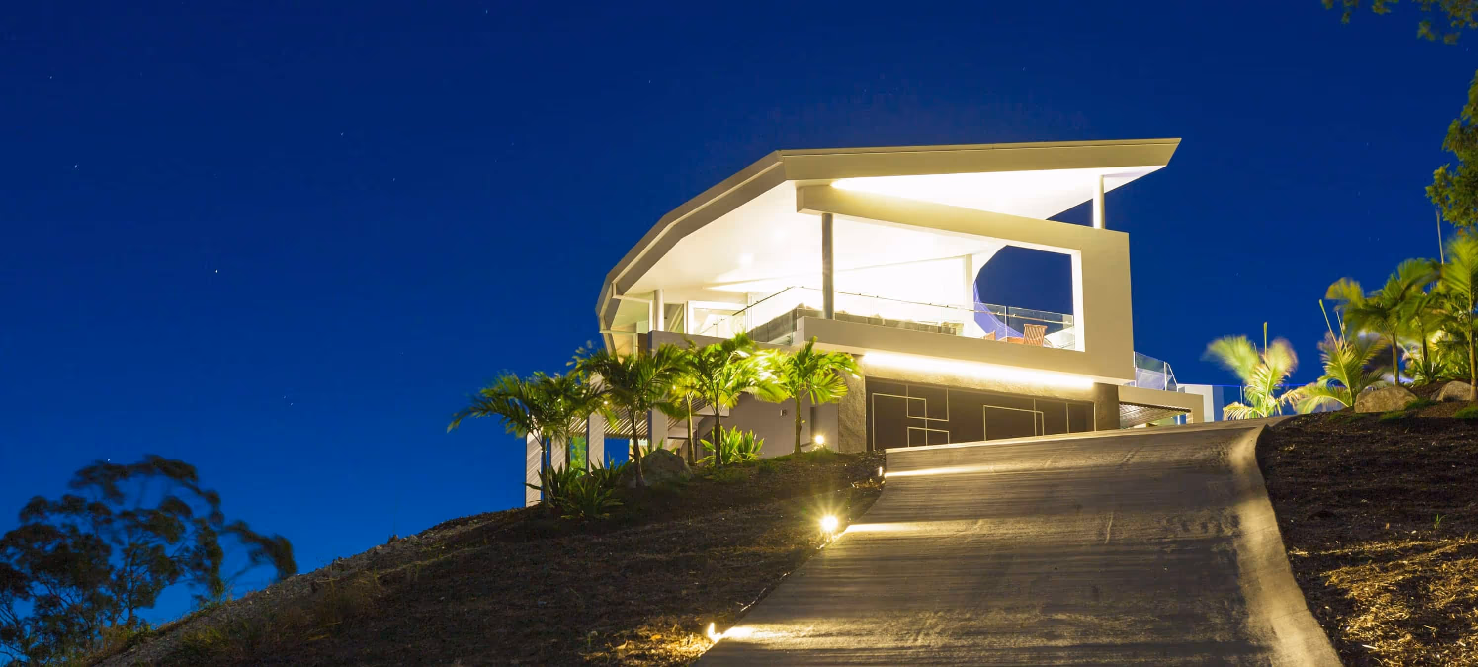 Perched on a hill overlooking the Maroochy River, this design is a mixed oasis which appears to float over its setting. With woodland surroundings and spectacular views encompassing the entire site, there is something beautiful to look at from every point of the house. The double-storey curved void also brings continuity to the house & lets the winter sun permeate the house making the most of its orientation.